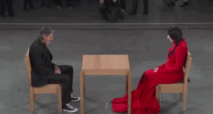 Frau macht eine Starr-Challenge mit Fremden. Der letzte Gast wird dich...