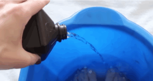 Stell deine Füße in ein Bad mit Wasser und Wasserstoffperoxid und...