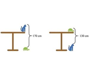 Berechne die Höhe des Tisches anhand der Schildkröte und der Katze!