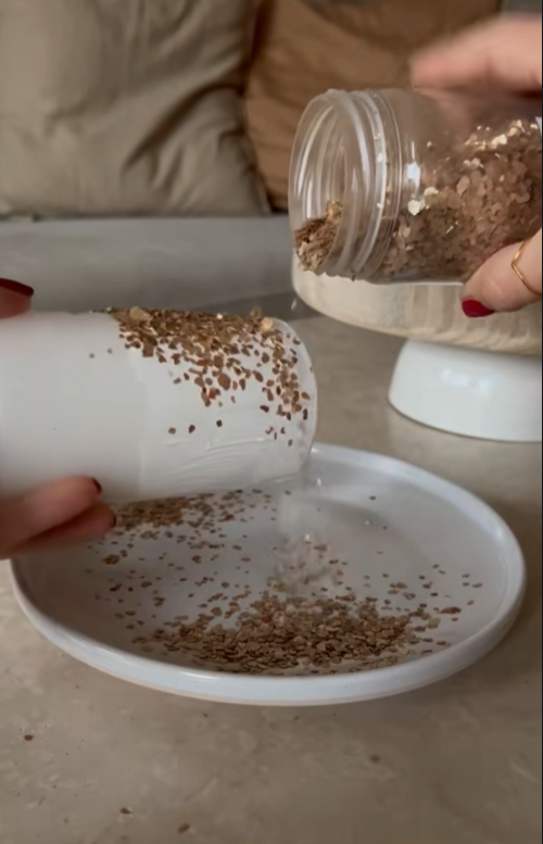Alles beginnt mit zwei Basisstücken: einem Holztablett und einer schlichten weißen Schale. Sie dreht die Schale um und klebt anschließend das Tablett fest darauf. Durch diese Kombination entsteht eine Art Podest; eine kleine Erhöhung, die sofort einen luxuriösen Look verleiht und sich ideal für dekorative Arrangements eignet. Das Ganze wirkt, als käme es direkt aus einem Wohnladen, kostet aber nur einen Bruchteil des Preises.