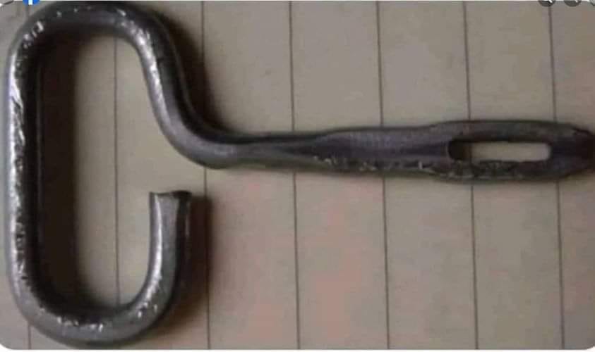 Das Objekt auf dem Foto sieht aus wie ein Schlüssel, aufgrund der Metallkonstruktion. Vielleicht erinnert es dich an ein Küchenwerkzeug oder an etwas, das in einer Werkstatt verwendet wurde. Es hat einen deutlichen Griff und einen spezifisch geformten Kopf, was darauf hindeutet, dass es für eine sehr spezifische Aufgabe genutzt wurde.